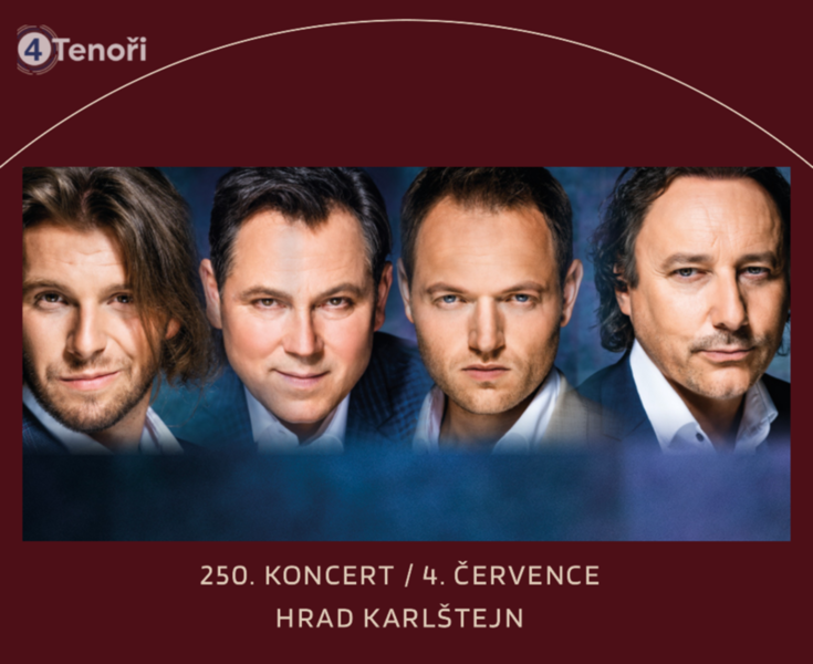 Exkluzivní spojení čtyř výjimečných sólistů v muzikálové formaci 4 Tenoři. Hudební projekt, který je v české pop-music naprosto mimořádný, byl oceněn dvěma Zlatými a Platinovými deskami. Speciální koncert se uskuteční na nádvoří klenotu české země, na Purkrabském dvoře hradu Karlštejn.